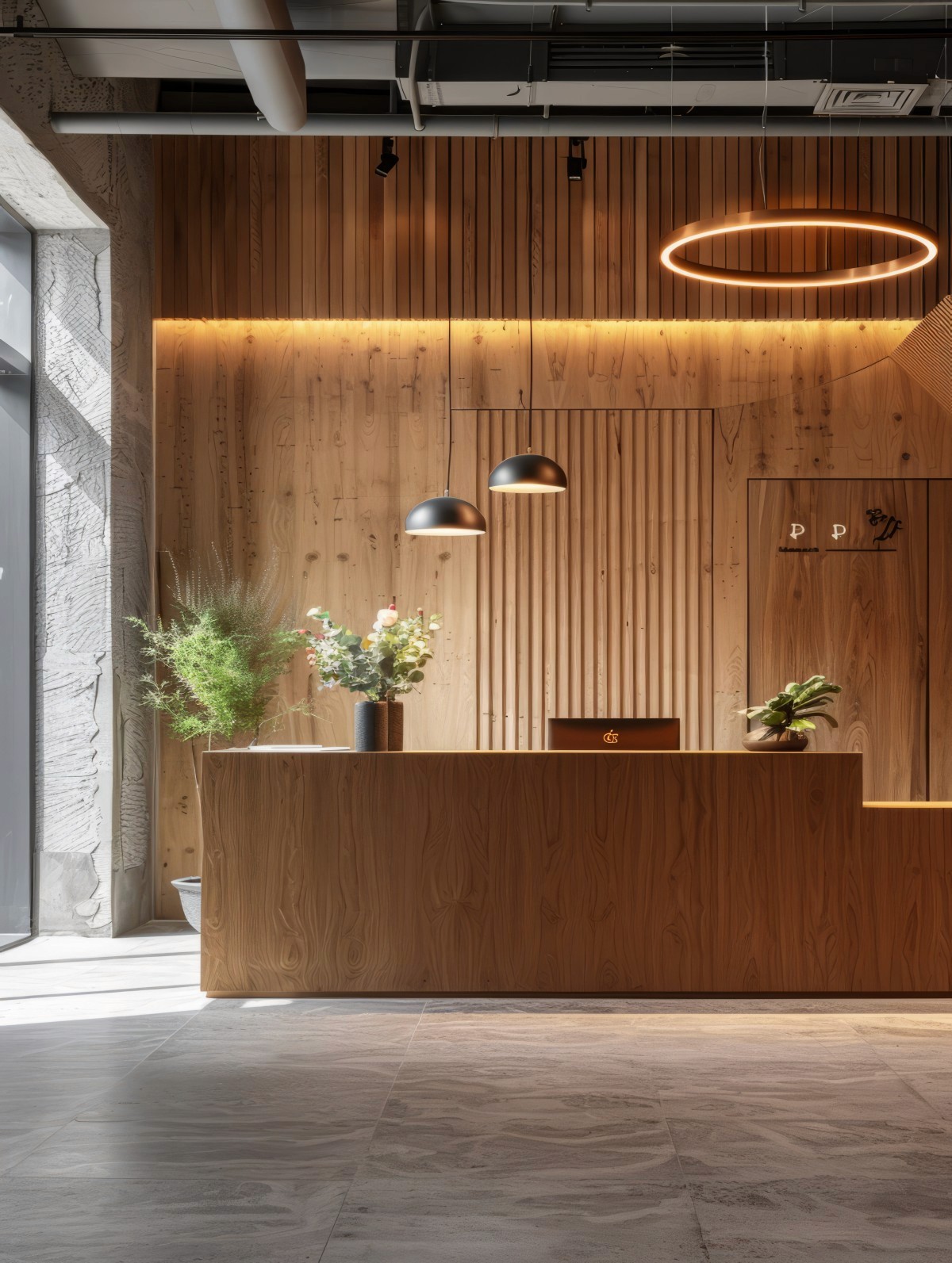 Reception desks and waiting area seating